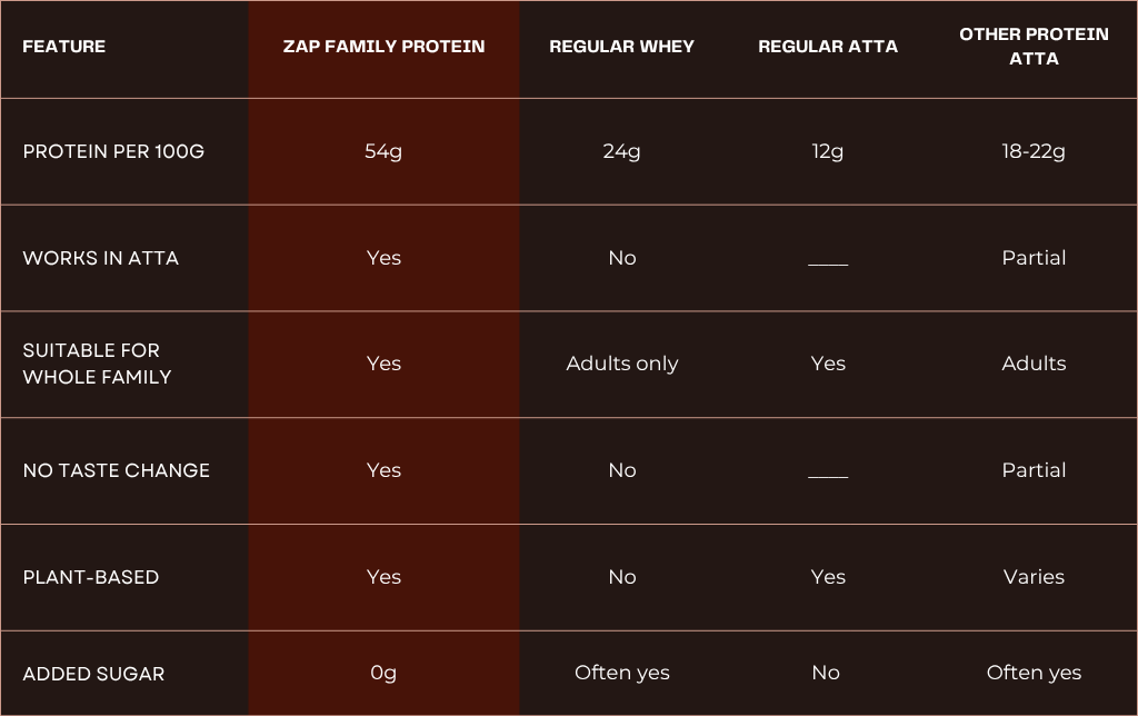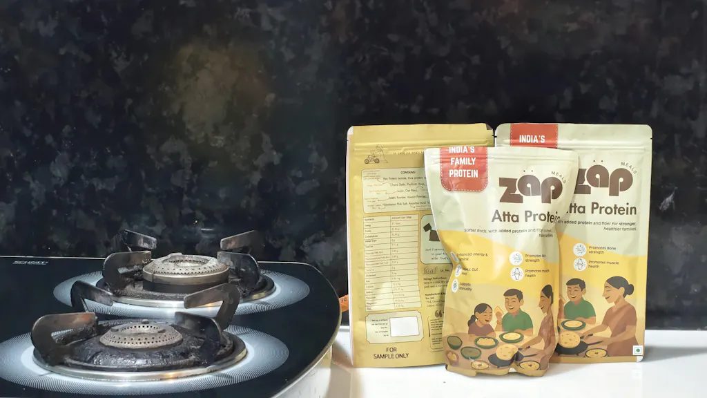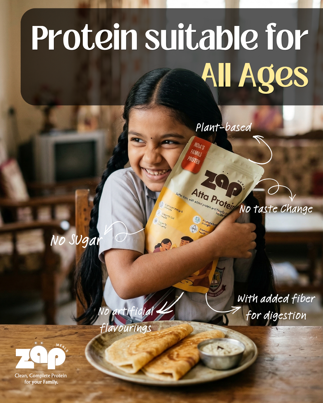 Plant-Based High-Protein High Fibre Blend [ to be added in any flour of choice] ZÄP Plant Protein is a plant-based, high-protein + high- fiber blend designed carefully to upgrade your favourite food . Just one simple step — mixing it with your regular wheat flour or any flour — delivers a daily protein and fiber boost with no change in taste, texture, or cooking method.